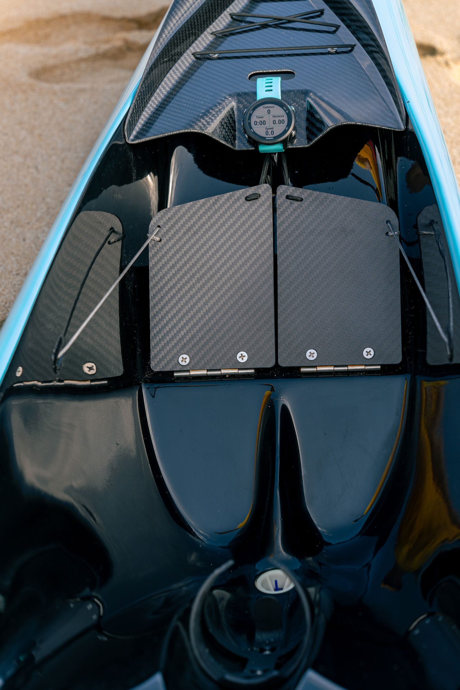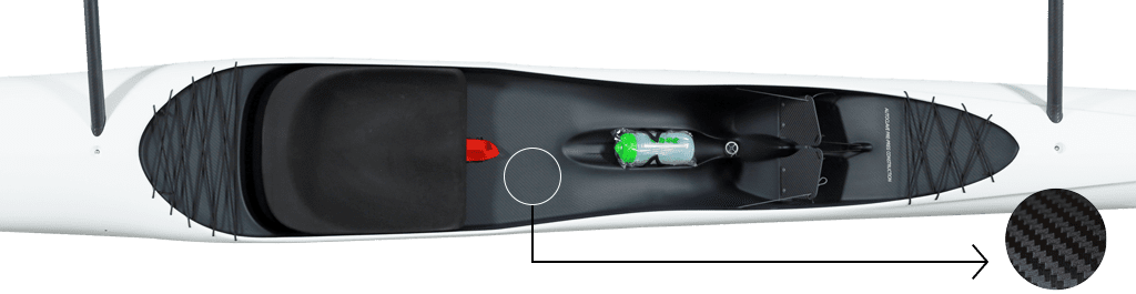 CARBON COCKPIT: 100% Prepreg carbon – high density foamcore – high pressure/temperature autoclave curing. Glossy painted seamless finish with a matte clear coated 3k Twill carbon cockpit. Simply the best looking canoe out there!