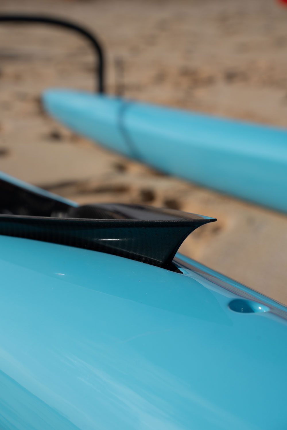 The Nalu Supernova is a new development, especially for those, who need less volume due to their physical stature. Regardless of whether they are women, juniors, or simply lightweight paddlers, they require a less volume canoe, which enabled us to release a completely new design onto the market. The Supernova is very short, and the underwater Hull is kept very narrow, which reduces the wetted surface to the essential and increases the performance and speed. We have also adapted the cockpit ergonomically, so that the canoe is more effective and easier to paddle and to control. The integrated Wave deflector helps to keep the cockpit dry, even in the roughest conditions.